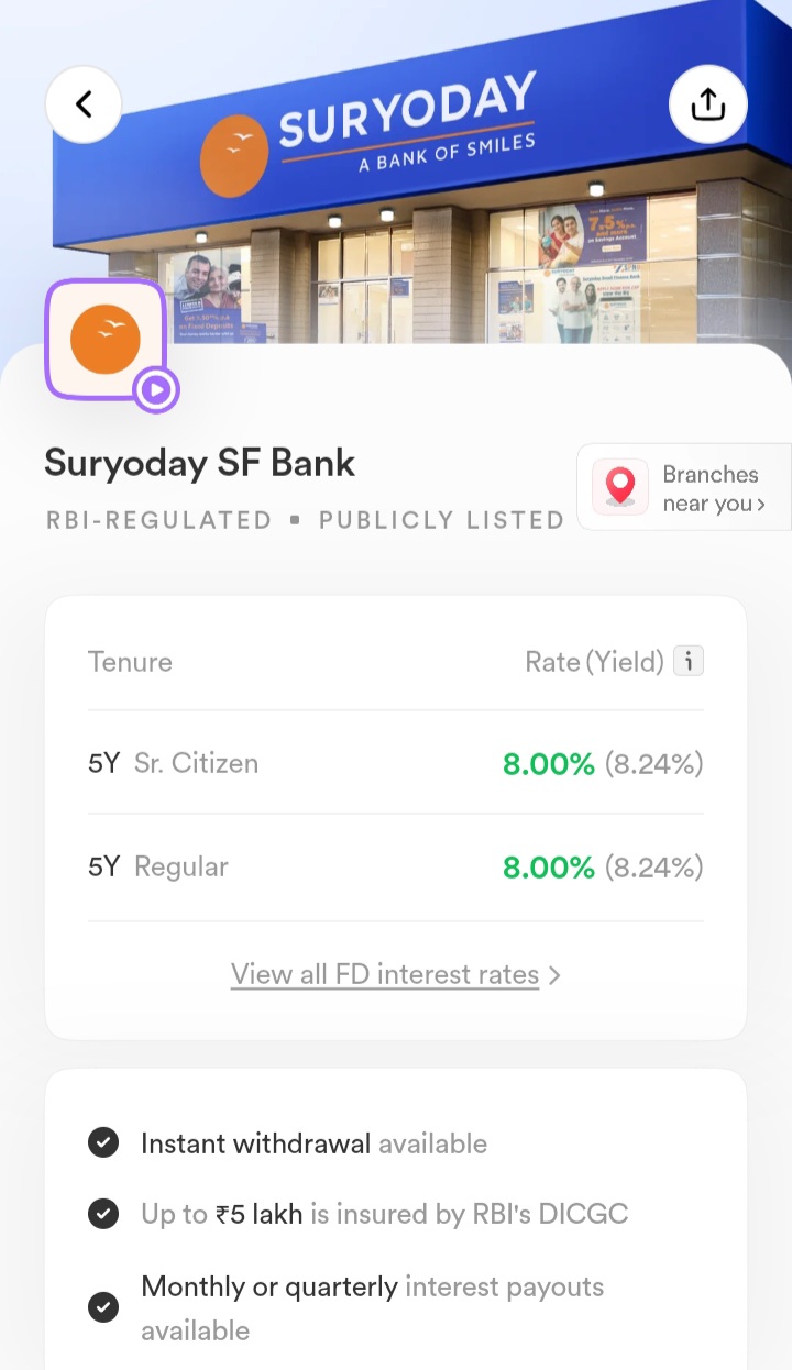 Ultra-high interest (যেমন ৮%+) সাধারণত comes with higher risks or stricter conditions — যেমন SFB-তে, DICGC ইনস্যুরেন্স সীমিত হতে পারে।