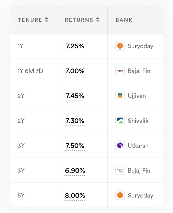 যদি আপনি ৩–৫ বছর ধরে সেভিংস রাখতে পারবেন — Suryoday Small Finance Bank বা Jana Small Finance Bank–এ FD খুলুন।