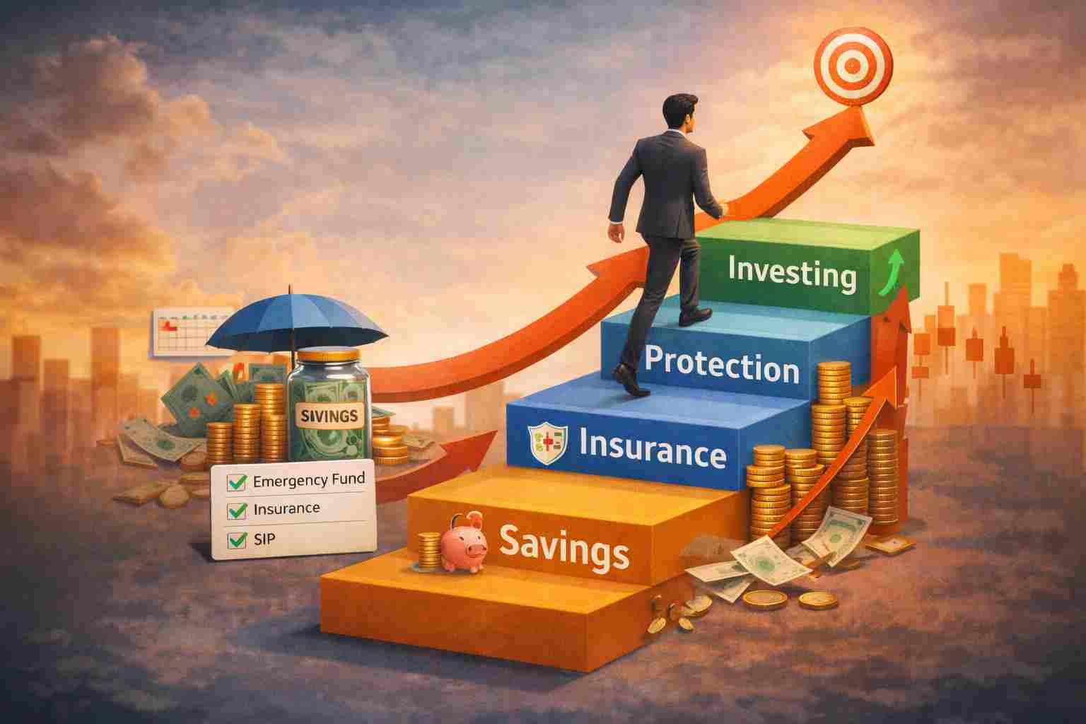 ●জরুরি তহবিল গঠন (Emergency Fund) ●বীমা নেওয়া (Health + Term Insurance) নিজের জীবনকে সুরক্ষিত রাখার জন্য। ●SIP শুরু করা ভবিষ্যতের কথা ভেবে।